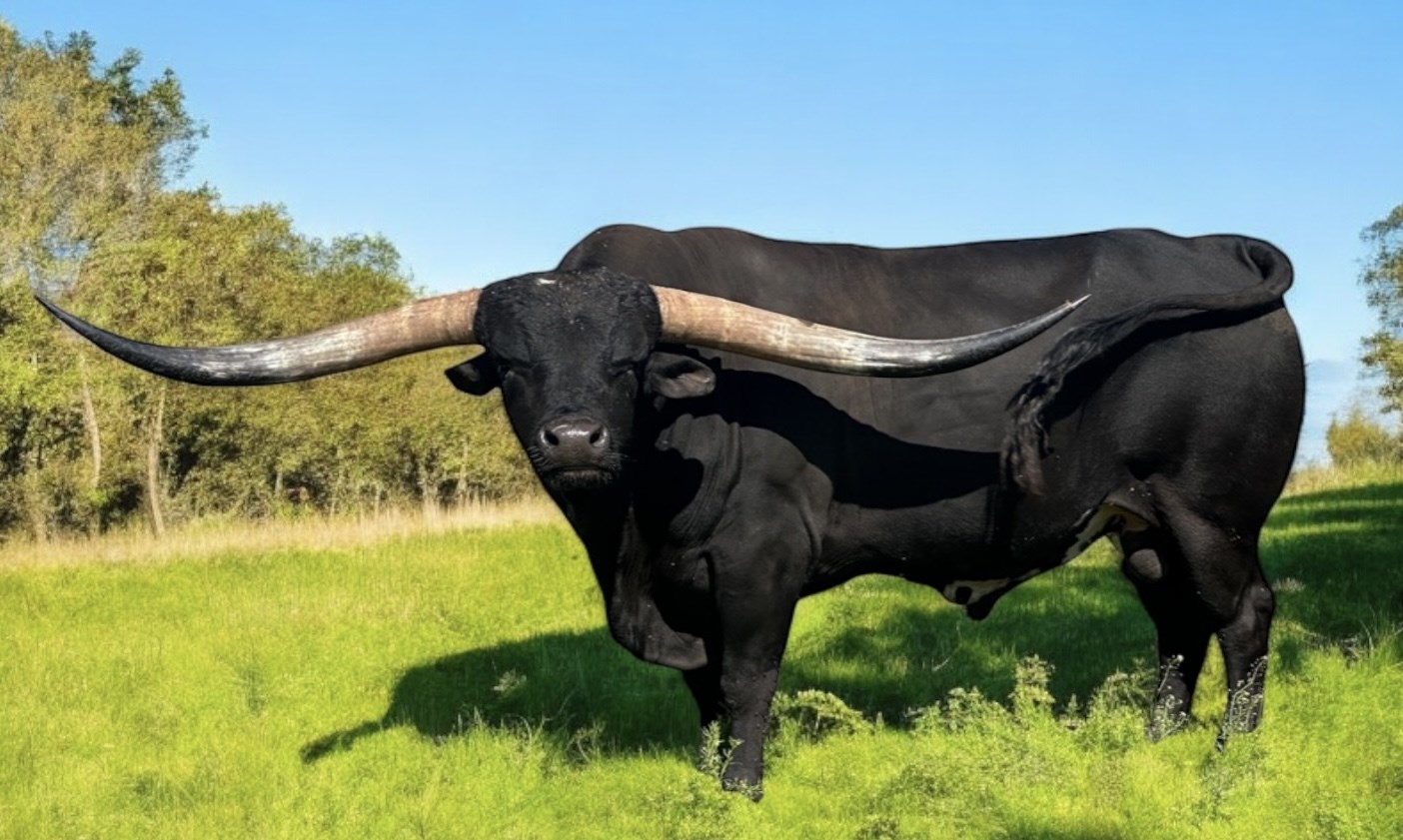 With 4-💯’s in his blood, HL Jango is in rare company. Unmatched pedigree Cowboy Tuff, Rio Catchit, Miss Kitty, Horseshoe J Example(402) Concealed Weapon, Delta Van Horne, ZD Kelly! Jango’s proof is in his progeny and his calves are having great success on the futurity circuit. Jango’s over 90”+TTT and the hottest true black bull in the industry🏁🔥.