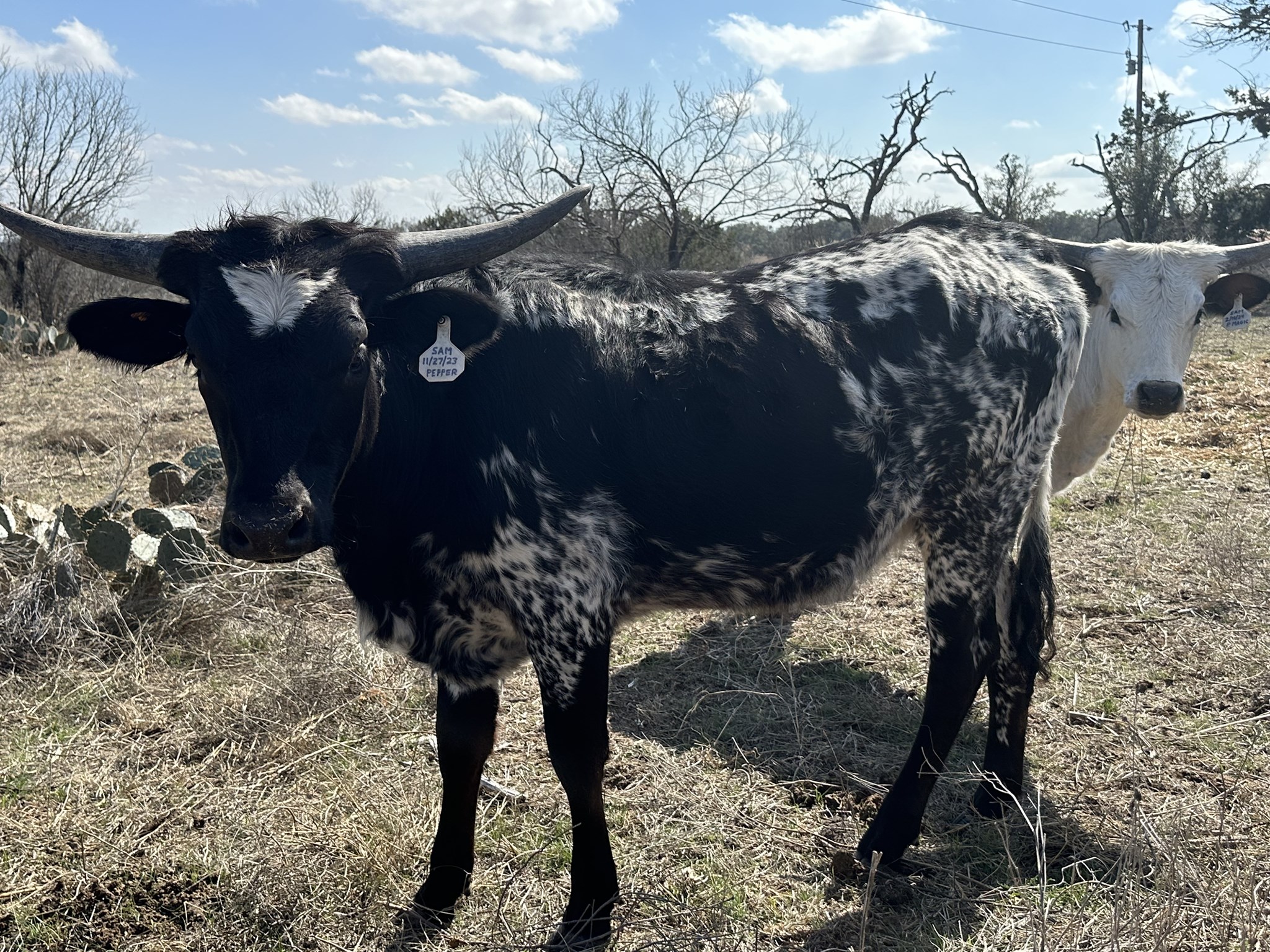 A gorgeous black n white heifer with great genetics for horn growth